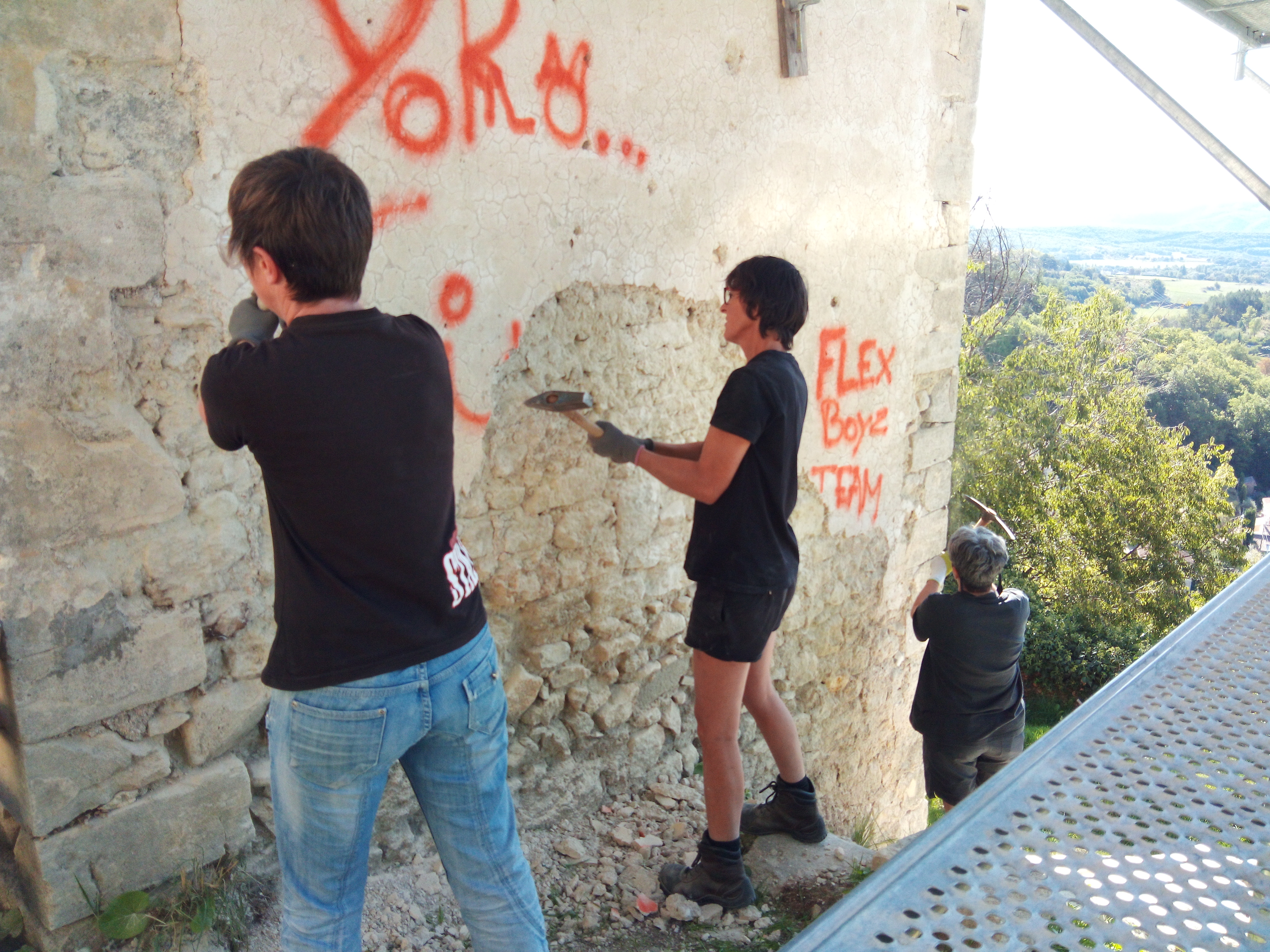 Les muraillers de Viens encadrent nos journées citoyennes : Laurent Doyer et Renan Pipaud, Renaud Eymoni, Yannick